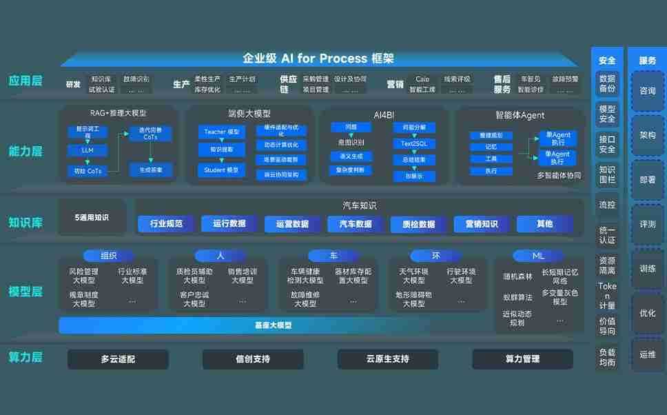 星欧xo问学智车解决方案是一套基于AI技术的汽车行业智能化系统,,,覆盖从底层算力到顶层AI应用的全栈方案。。方案由算力层、、模型层和应用层组成:算力层,,方案支持多种一体机配置,,,具备云端灵活部署、、、多云适配以及动态优化计算资源的能力;模型层,,,星欧xo问学平台版提供了企业级AI应用一站式构建与管理平台,,,,支持基于后训练强化技术的汽车企业专属模型的训练、、、、评测和运营;应用层,,,,星欧xo问学DeepSeek版提供包括超级员工、、、智能招采、、、、智能营销、、、、智能客服、、、AI for BI等一系列解决方案,,,可助力汽车行业实现数字化转型,,,让管理更智能、、响应更敏捷。。。。