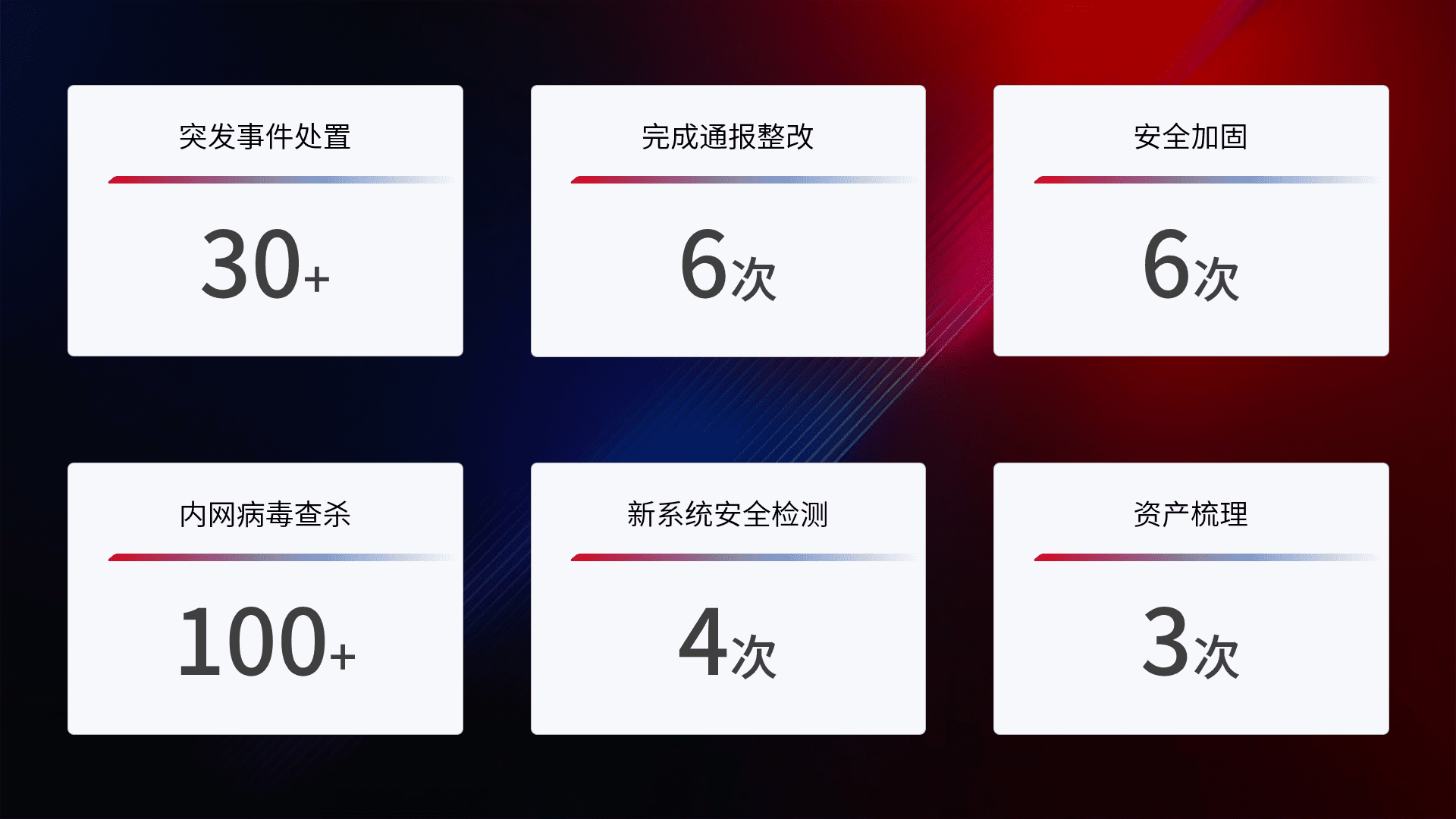 安全水平提升与事件响应:派驻经验丰富的安全工程师,,,,提升医院网络安全防护的整体水平;建立突发网络安全事件的处置流程,,提高响应速度和处置能力。。。